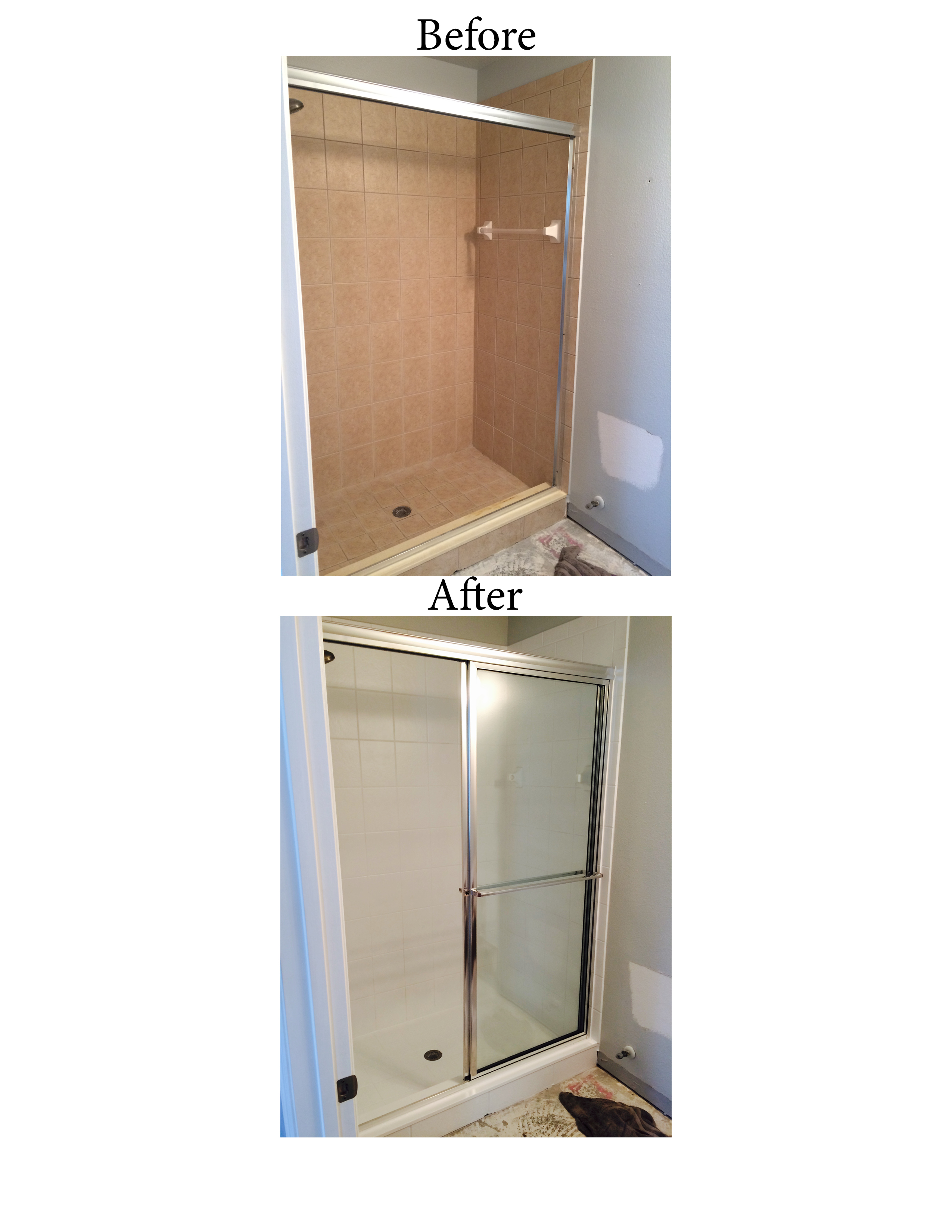 - Before and After shower with glass door