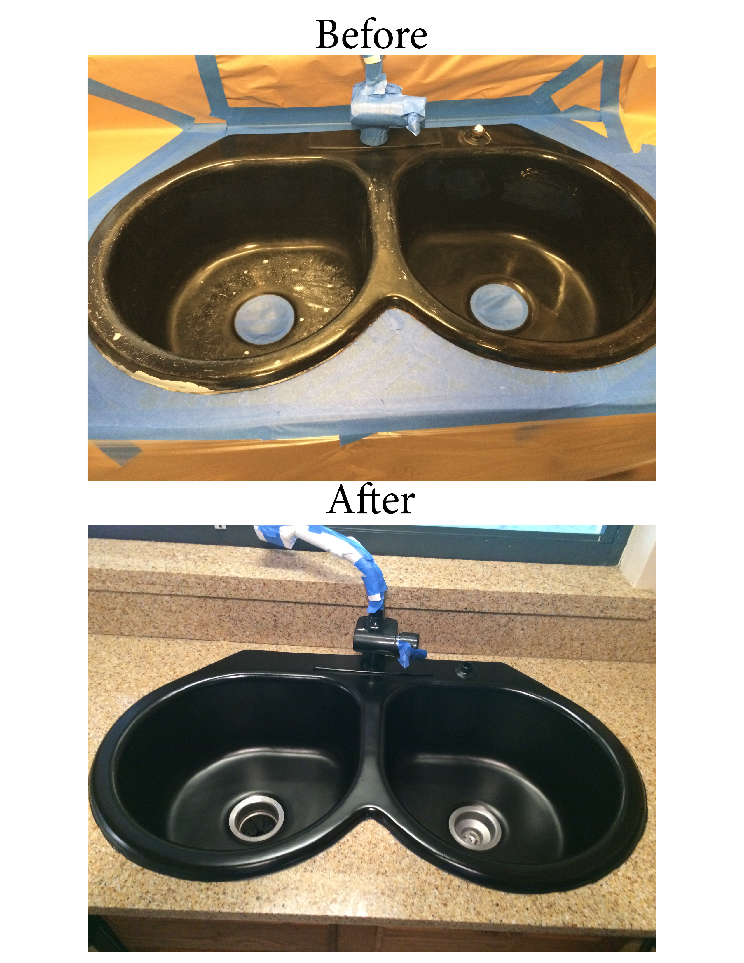 - Before and After comparison of a dirty sink and a clean sink.