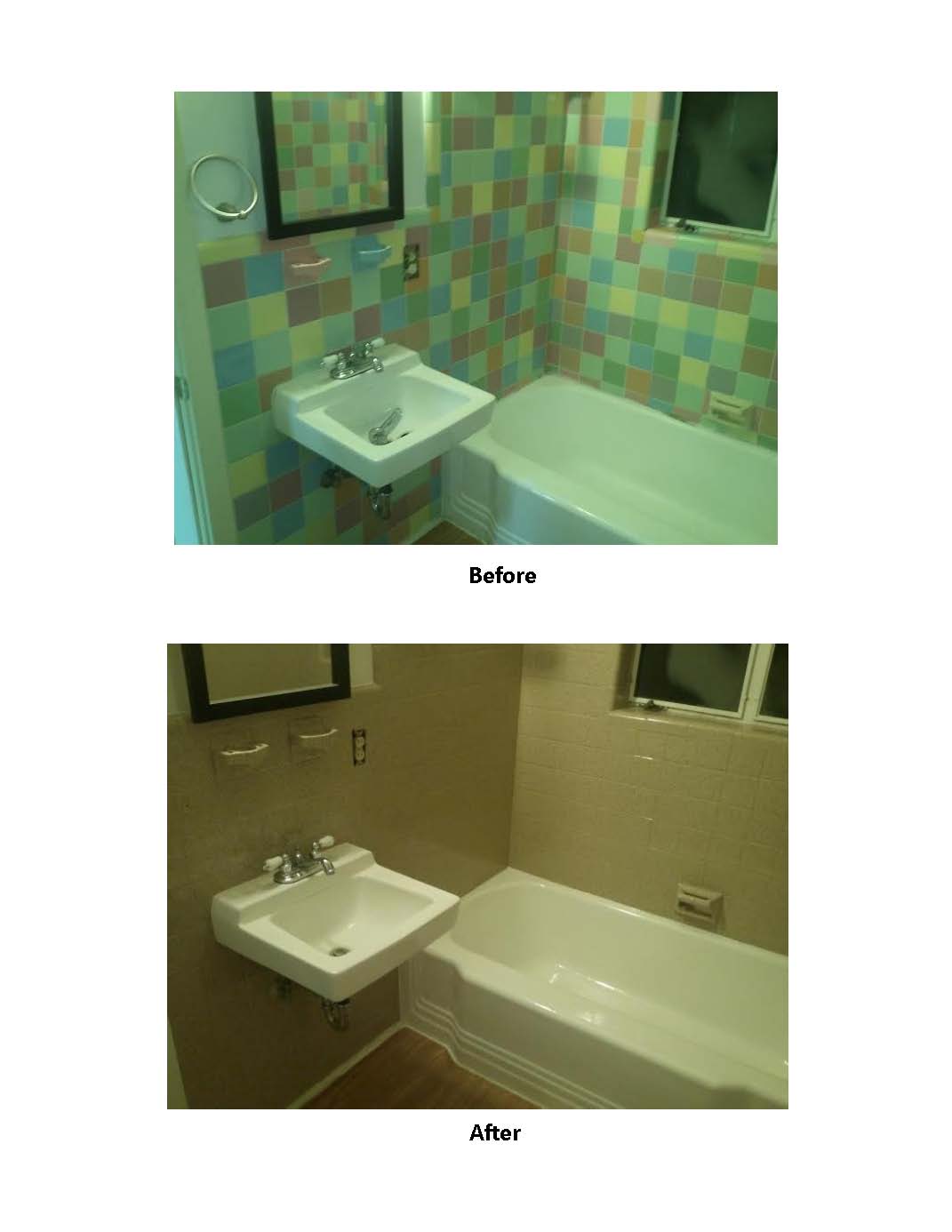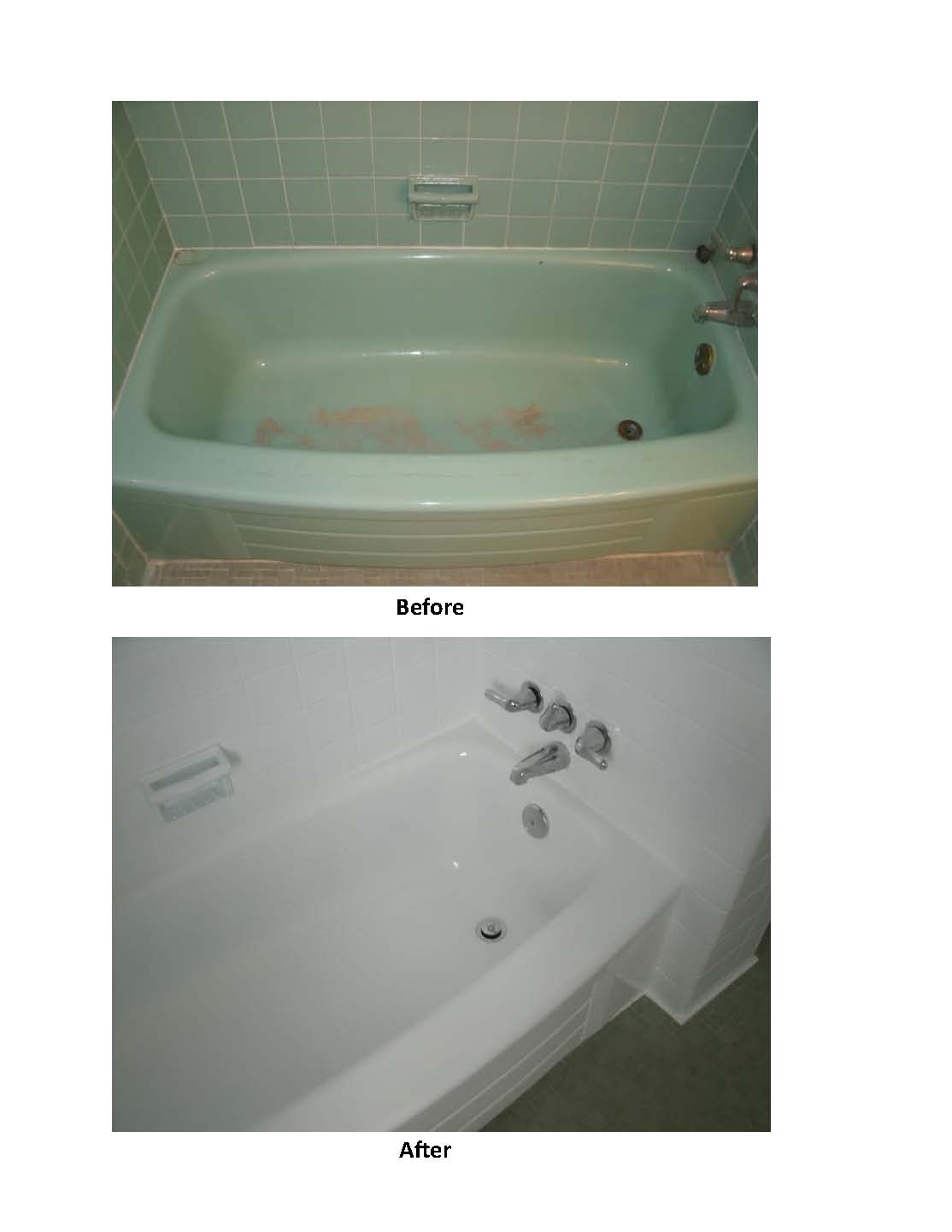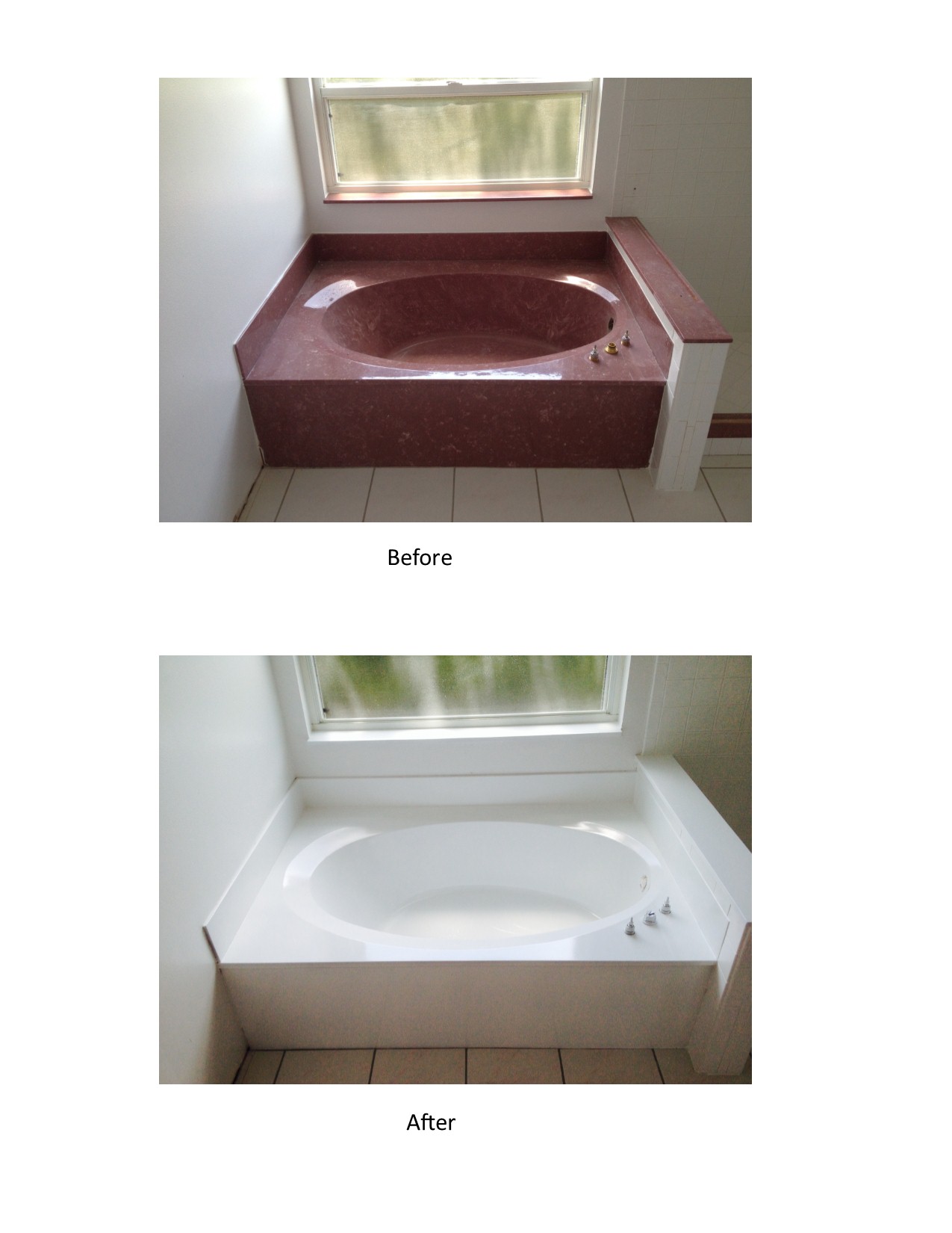 - Bathtub Before and After: brown to white refinish.