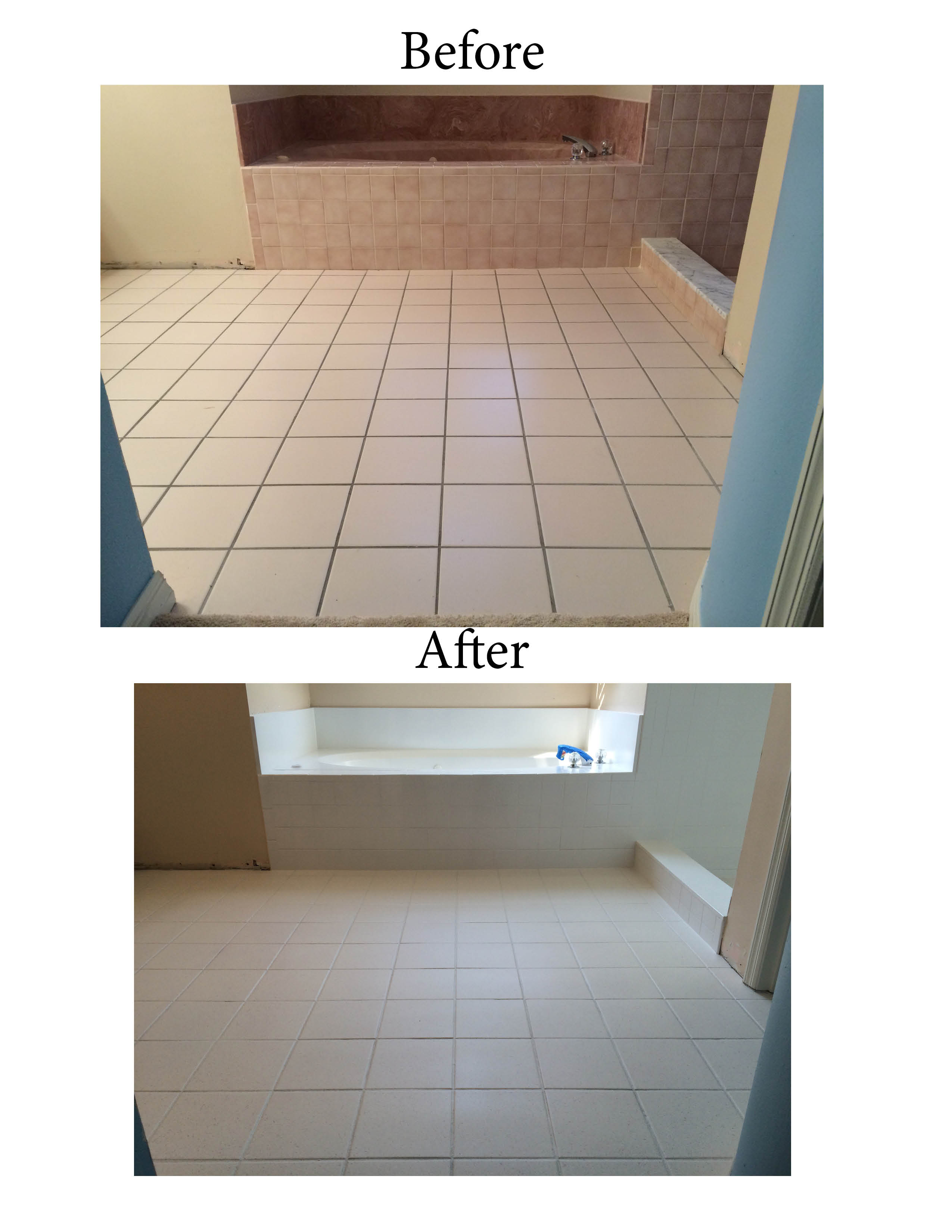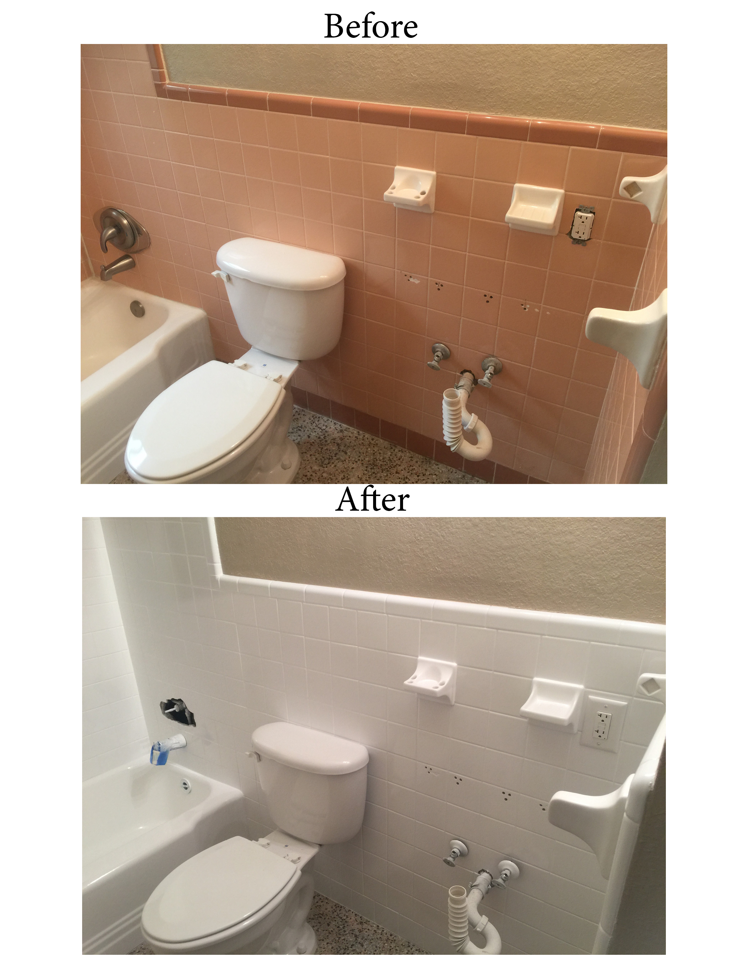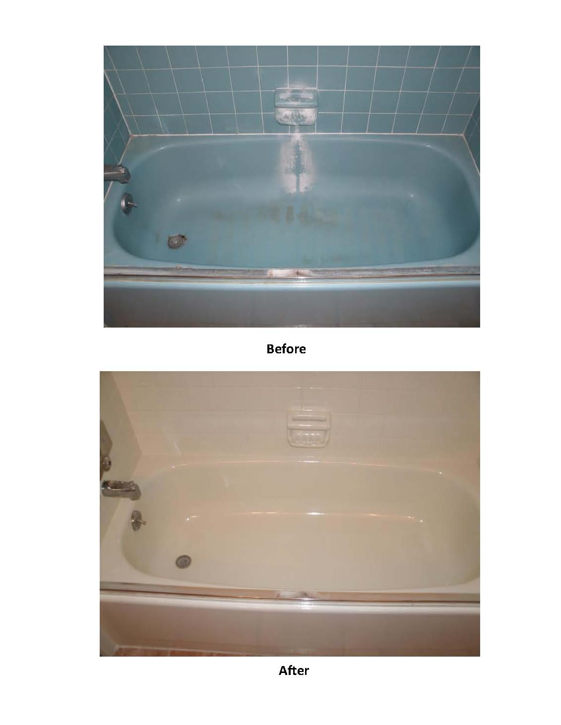 - Bathtub Before and After: brown to white refinish.