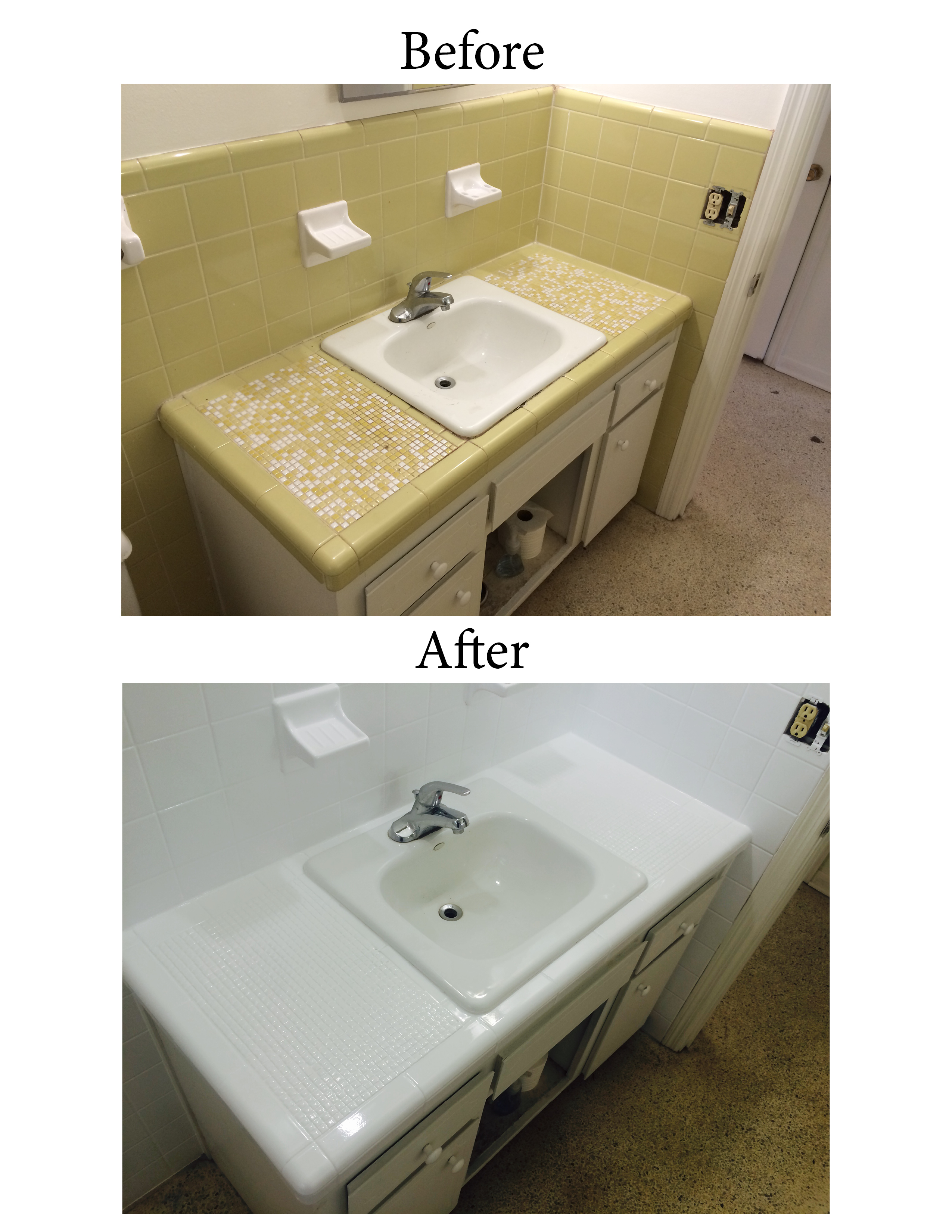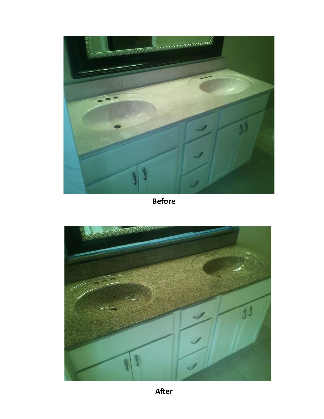 - Before and After bathroom vanity resurfacing