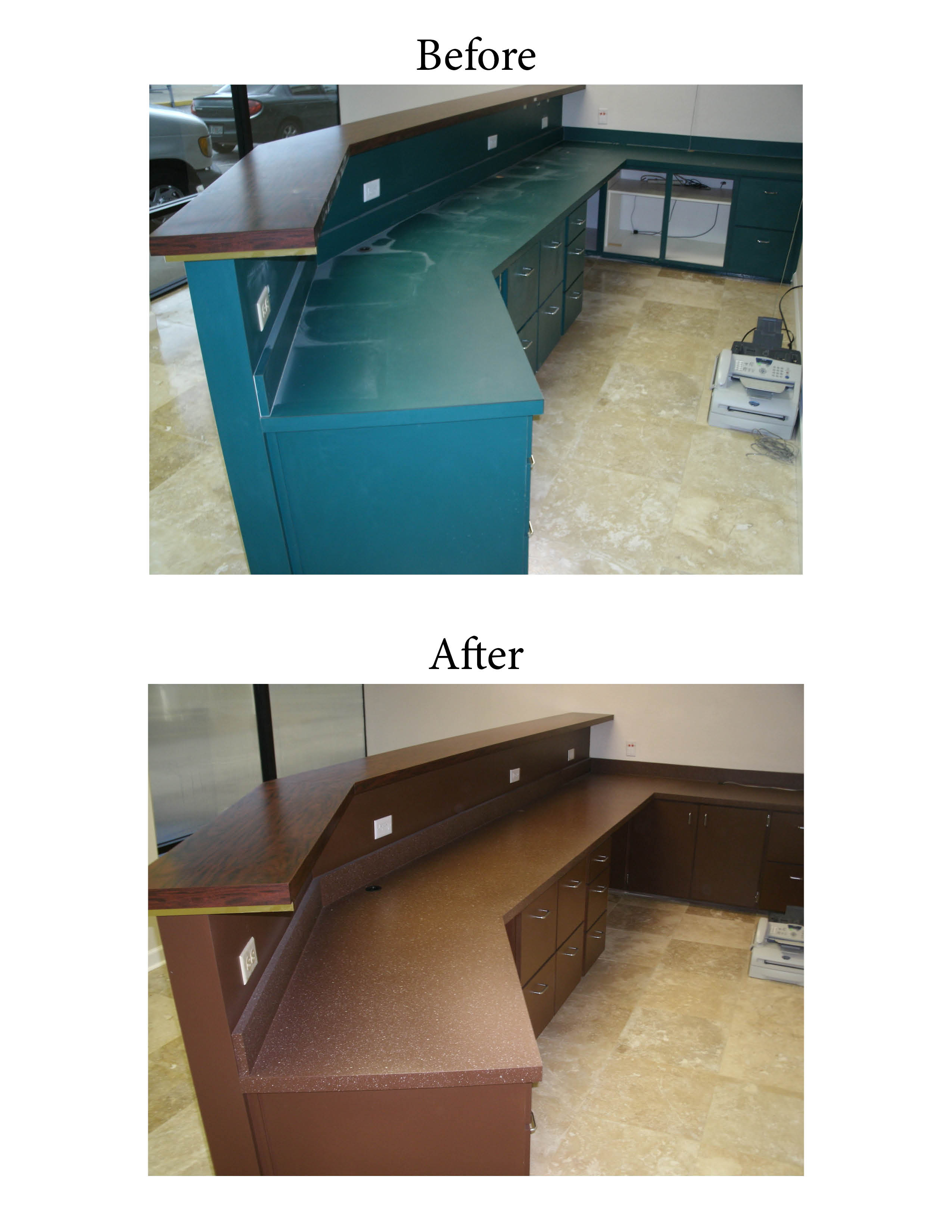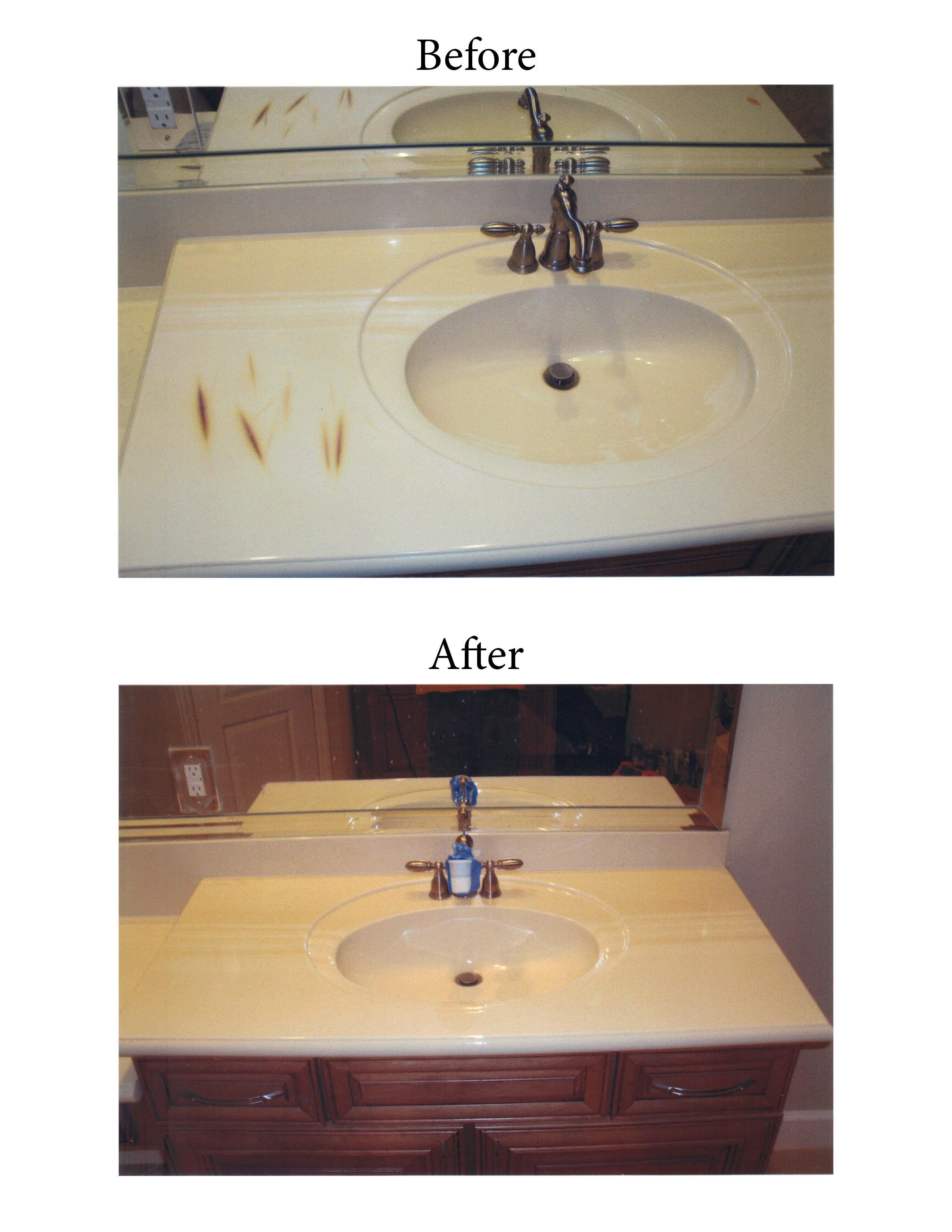 - Before and After bathroom vanity resurfacing.