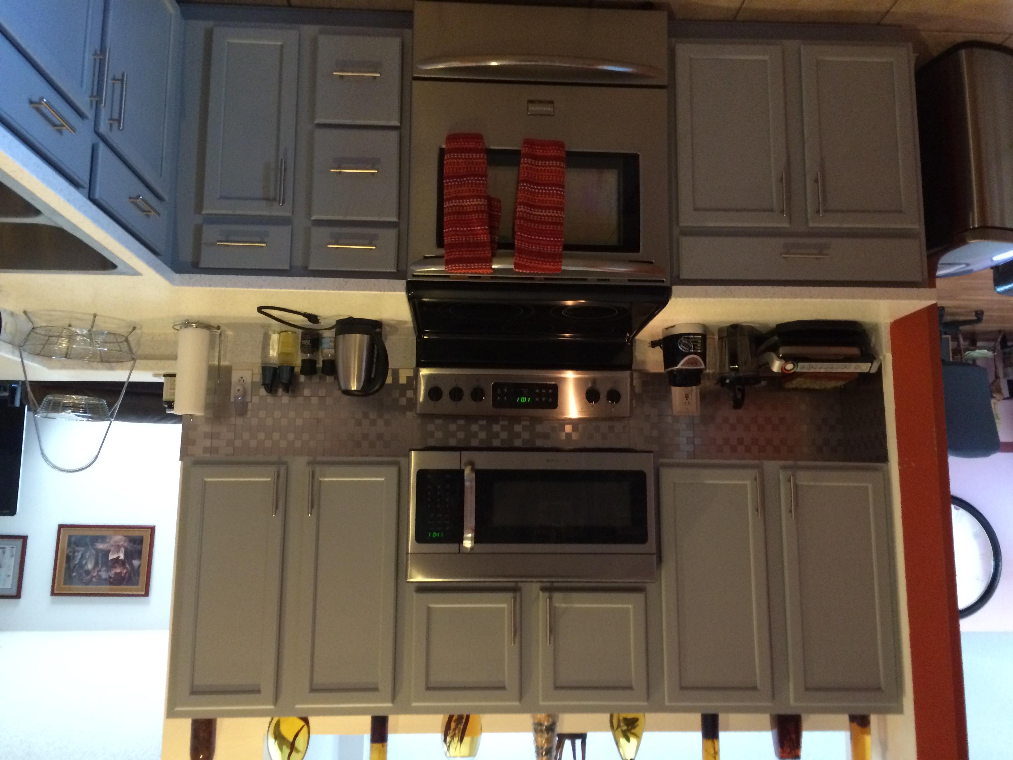 - After: Updated kitchen with gray cabinets