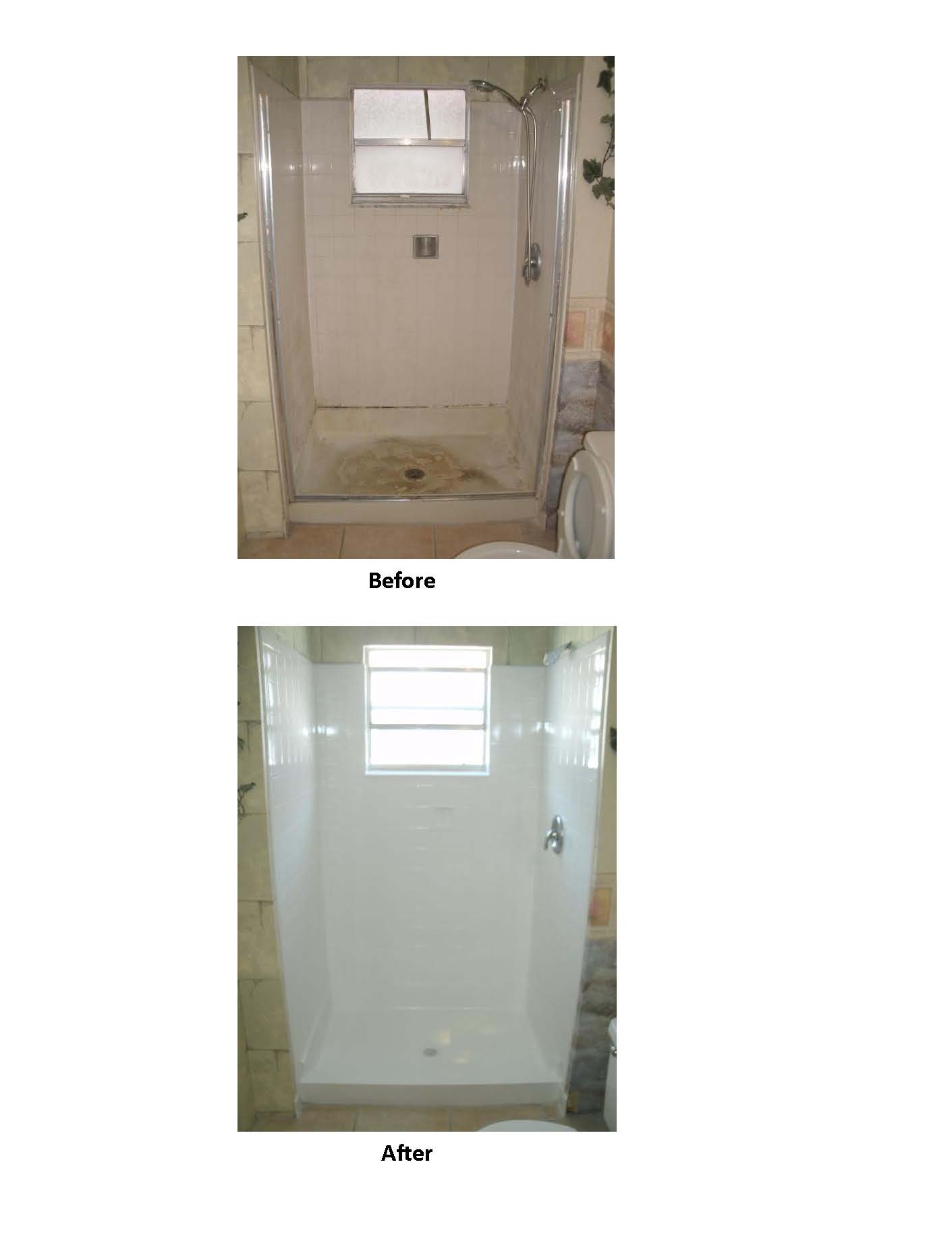 - Before and After: Dirty shower, then clean.