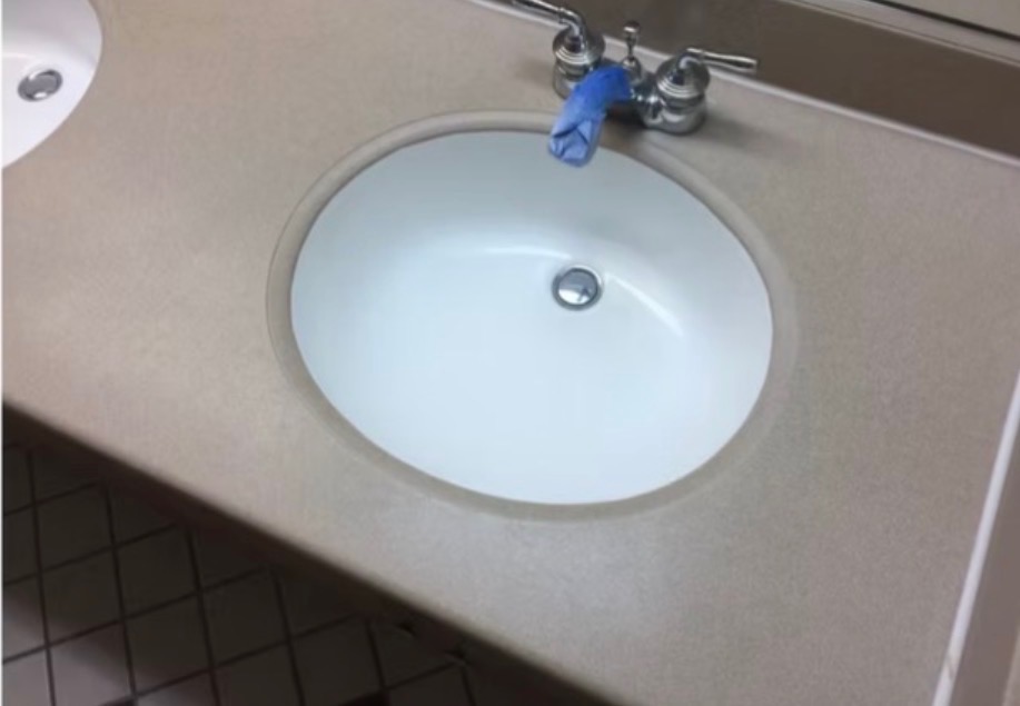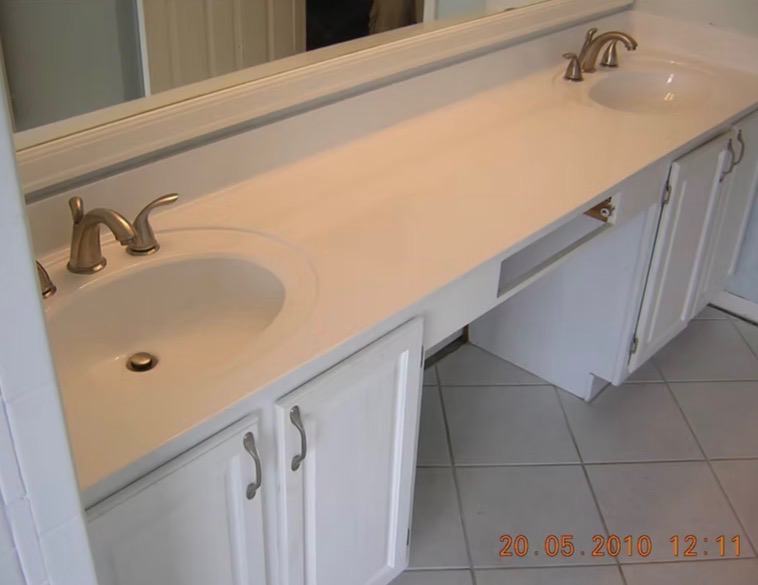 - Bathroom sink and countertop before resurfacing work