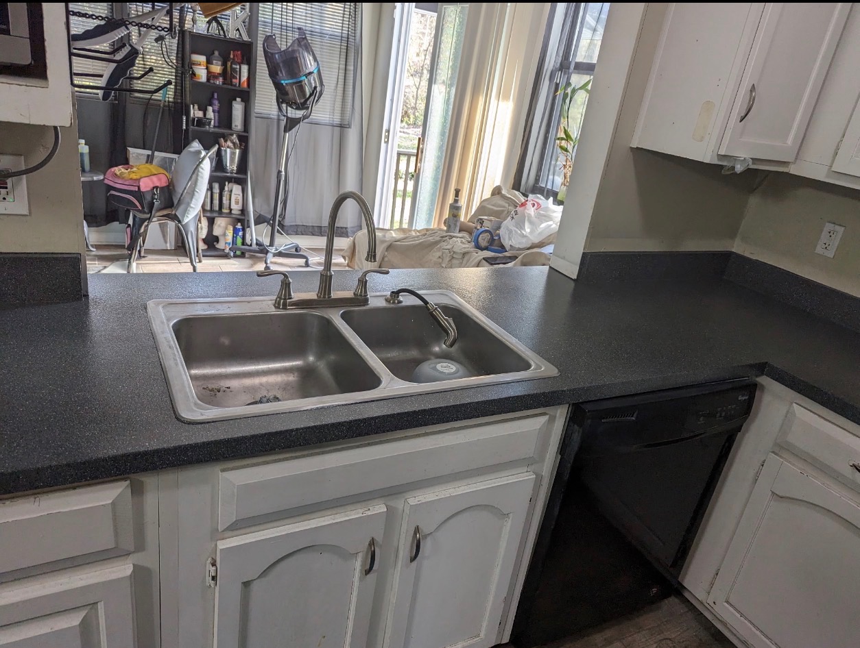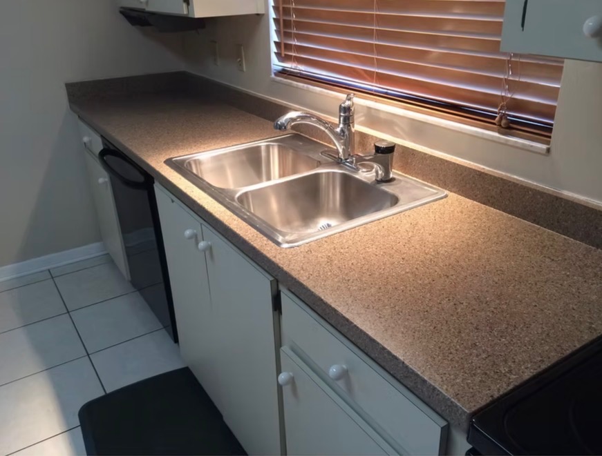 - Kitchen counter with double sink, completed resurfacing work