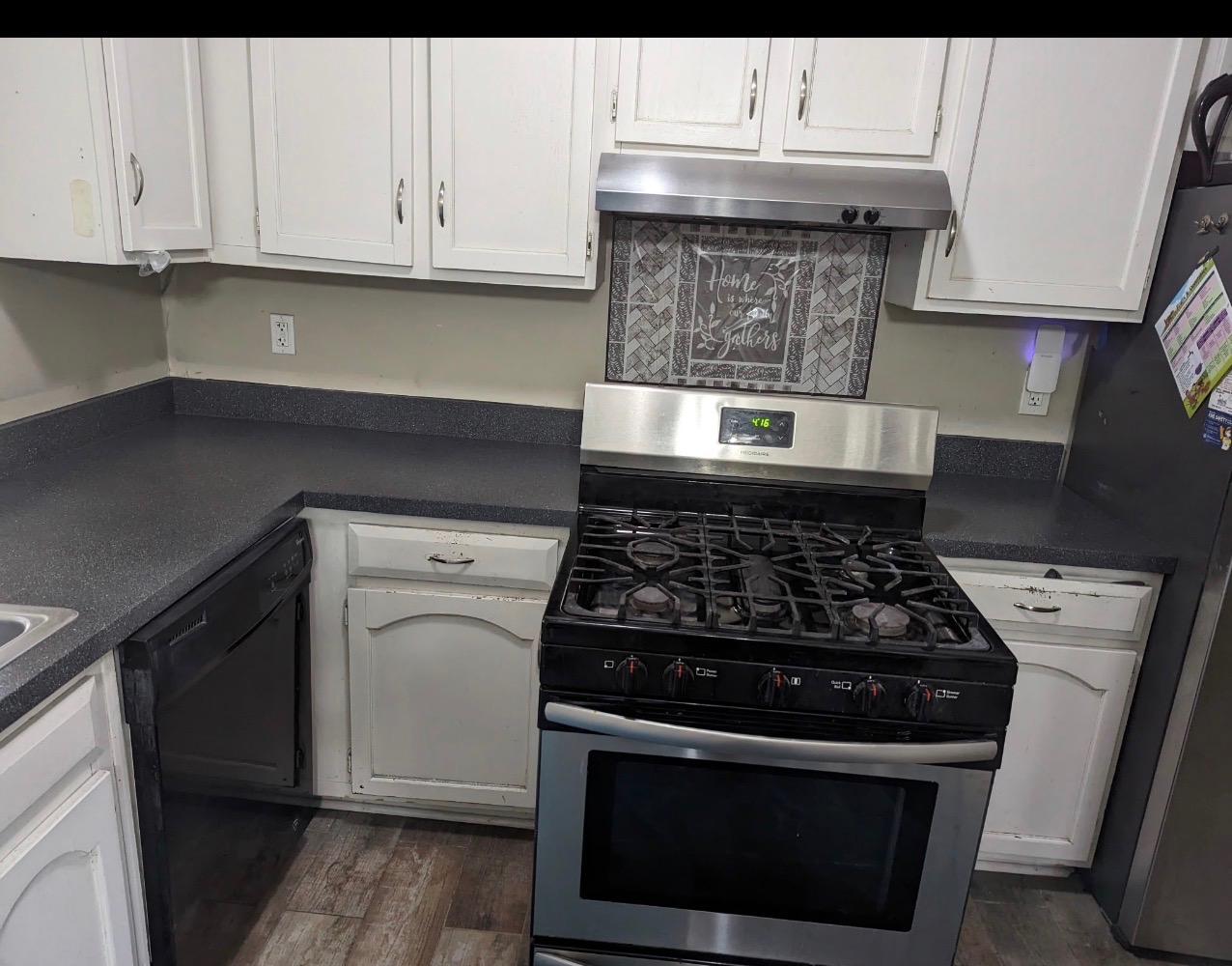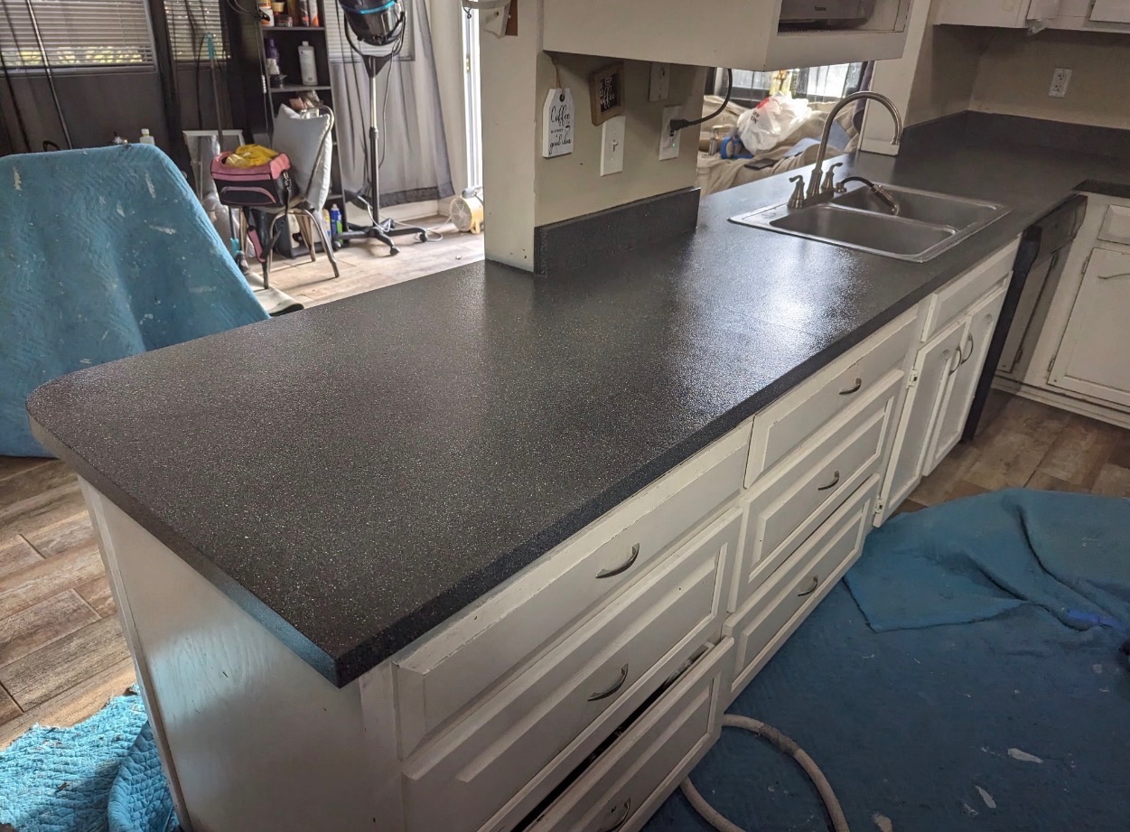- Dark gray kitchen countertop, resurfacing work