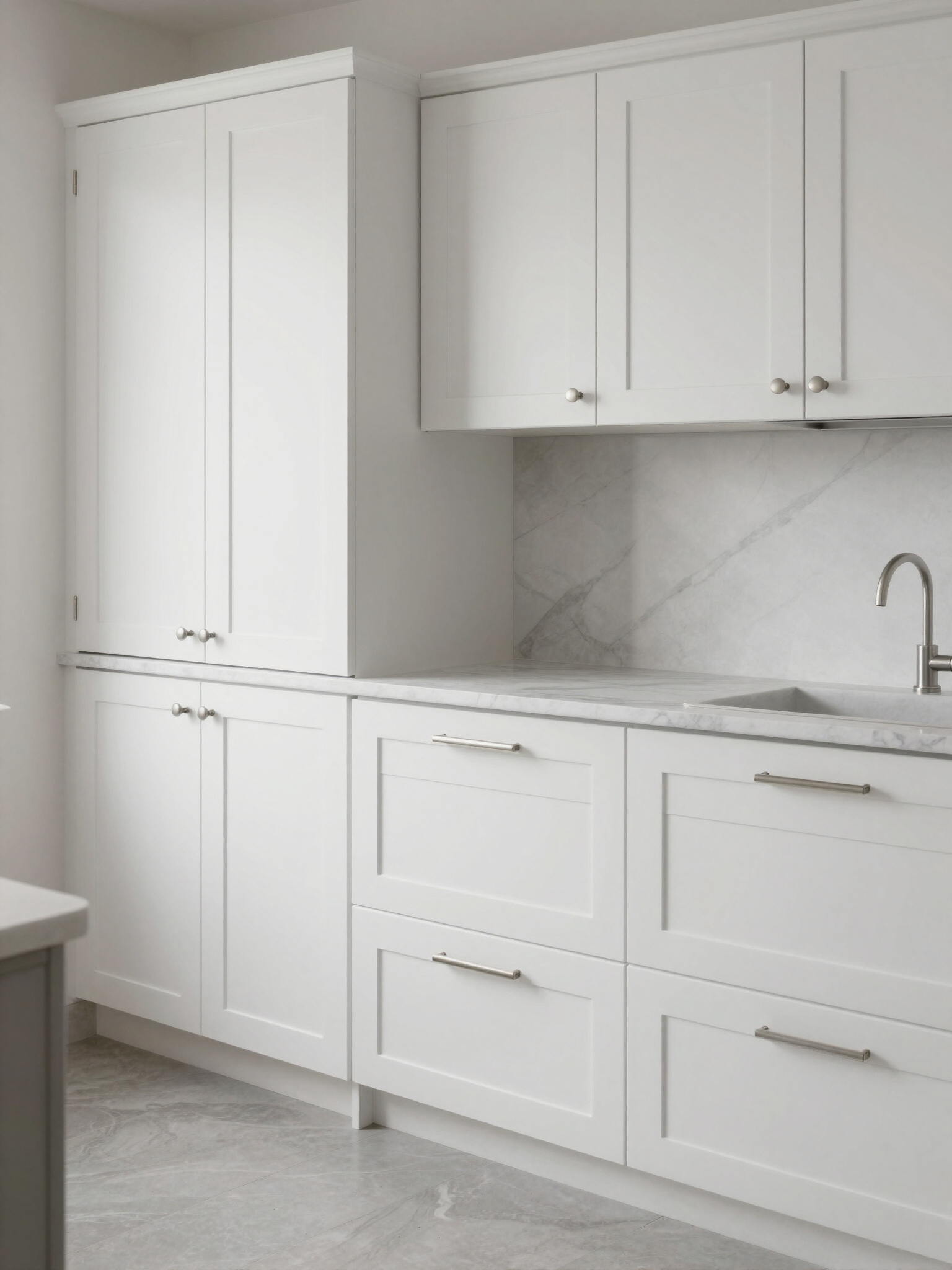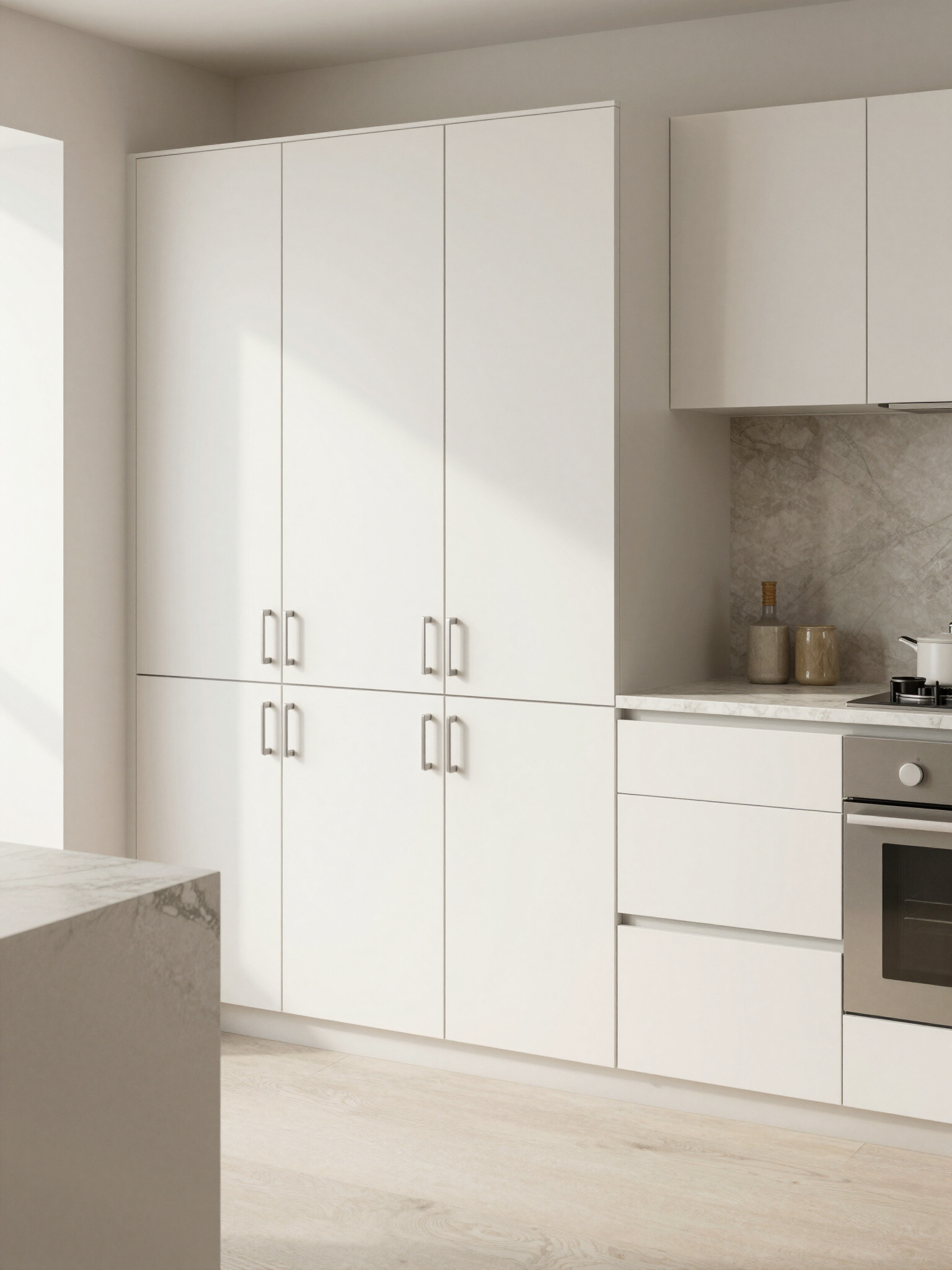 - Modern kitchen with white cabinets and oven